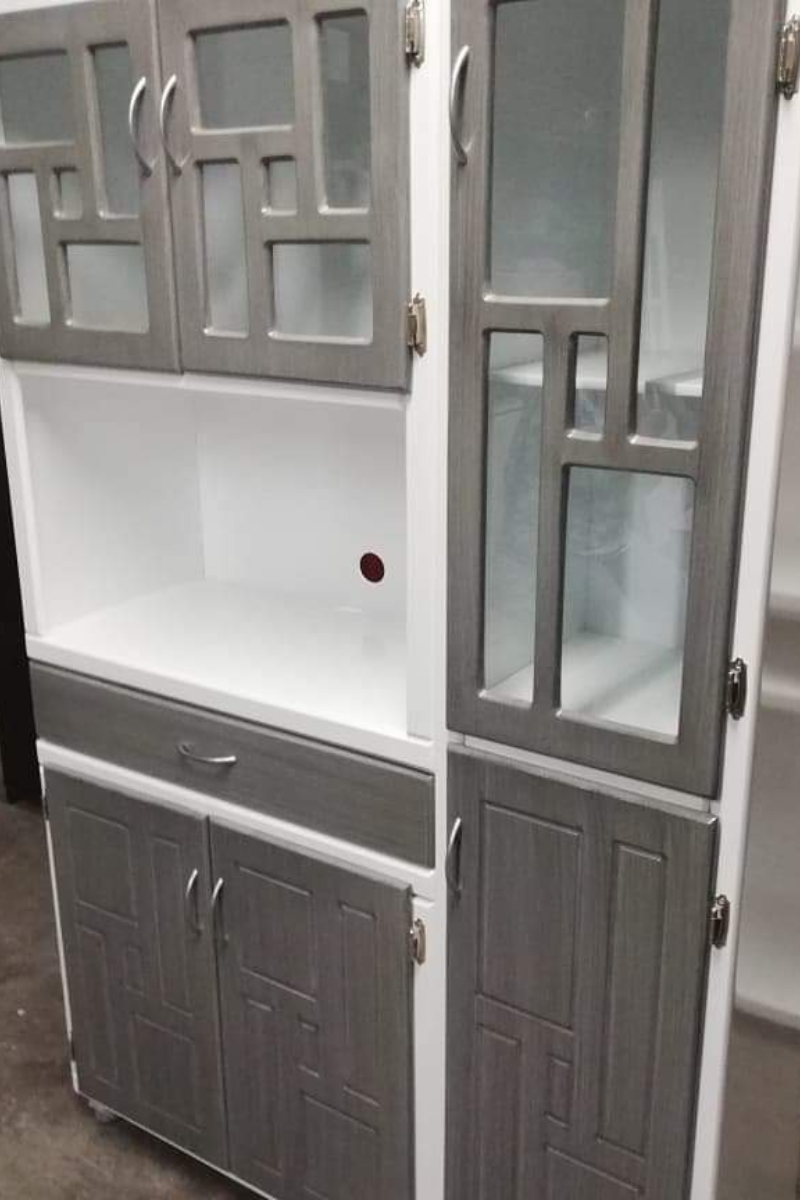 - Buffet Inferior: Un amplio cajón para cubiertos y un gabinete de dos puertas sólidas para ollas y sartenes.