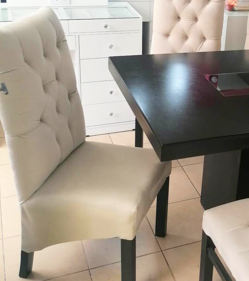 La Silla Capitonada Faldón es la definición de confort y diseño clásico renovado, ideal para quienes buscan crear un comedor acogedor y lleno de estilo. Esta silla se distingue por su tapizado integral en una tela suave y resistente, que aporta calidez y textura a tu espacio.
