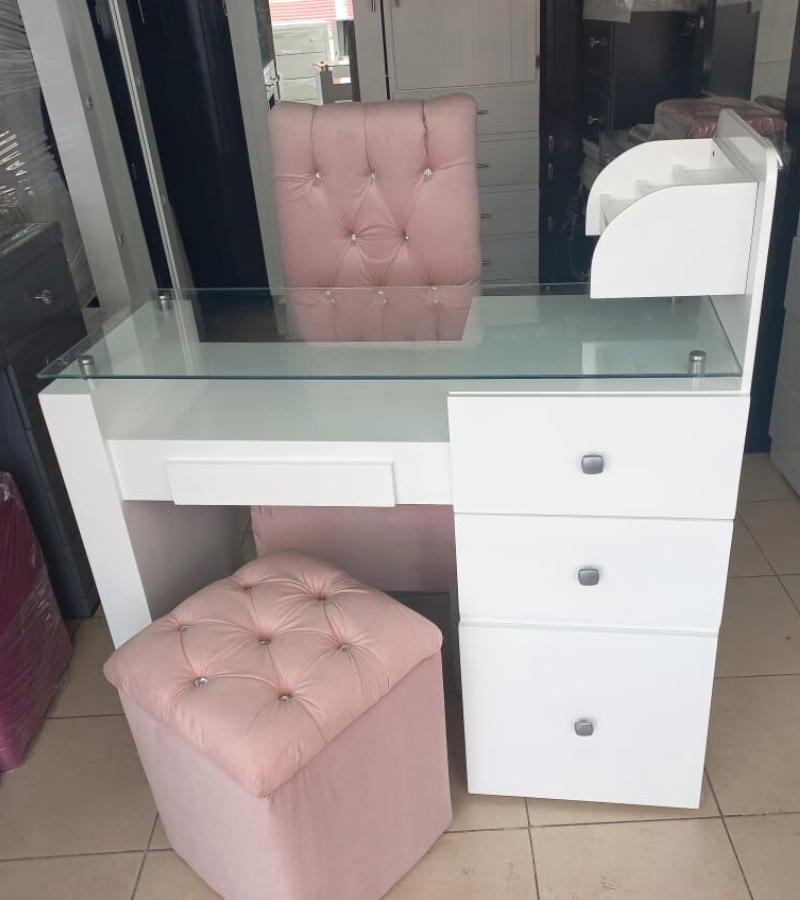 Presentamos la Mesa “Aries”, una pieza que define la funcionalidad y el diseño moderno. Es la solución perfecta si buscas una base para tu tocador, un escritorio para home office o una completa mesa de manicura. Su estética limpia (mostrada en blanco total y en combinación blanco/rosa) se adapta a tu estilo.