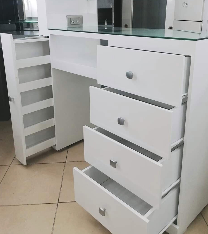 • Gabinete lateral con 4 estantes (ideal para esmaltes).