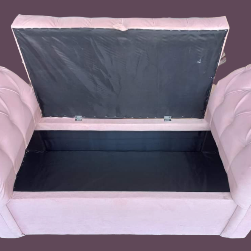 Añade una pieza de elegancia y funcionalidad superior a tu recámara con nuestro Pie de Cama Capitonado. Este mueble 2 en 1 combina la sofisticación de una banca de lujo con la practicidad de un amplio espacio de almacenamiento oculto.