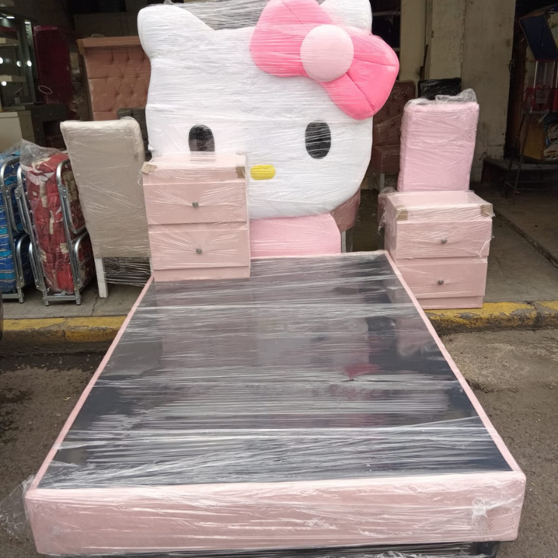 Transforma tu habitación en el espacio más adorable con la Recámara “Kitty”. Este set de 4 piezas (Cabecera, Base y 2 Burós) es la elección perfecta para fans de Hello Kitty que buscan un dormitorio temático lleno de personalidad y encanto.